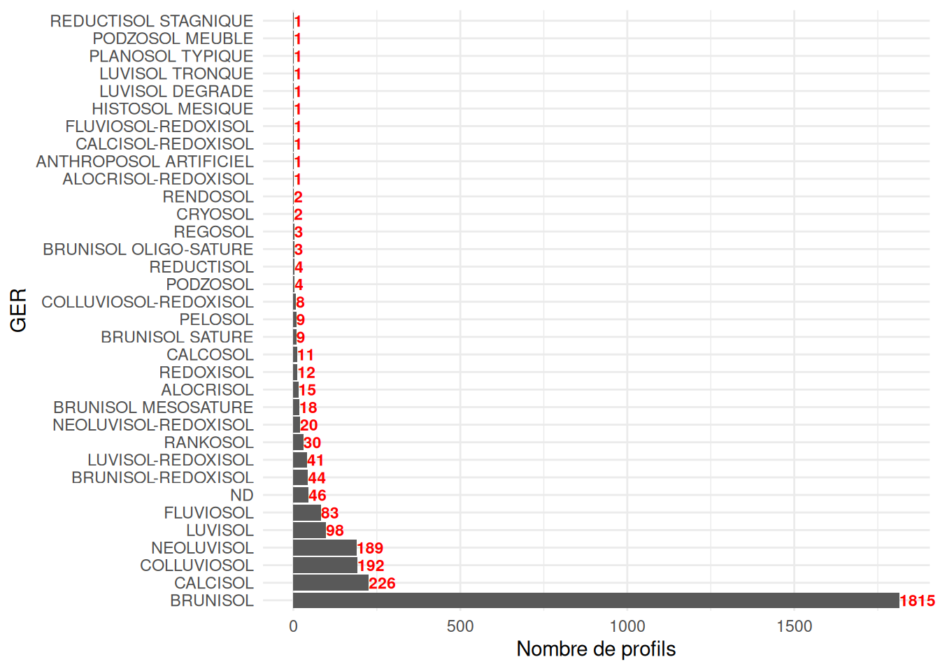 La table PROFIL contient la description synthétique du profil de sol (fosse, sondage à la tarrière…). La table PROFIL décrit la localisation géographique du profil, son environnement, sa situation géomorphologique, son organisation géologique, les différentes origines de sa différenciation en horizons, ses caractéristiques hydriques et sa classification.